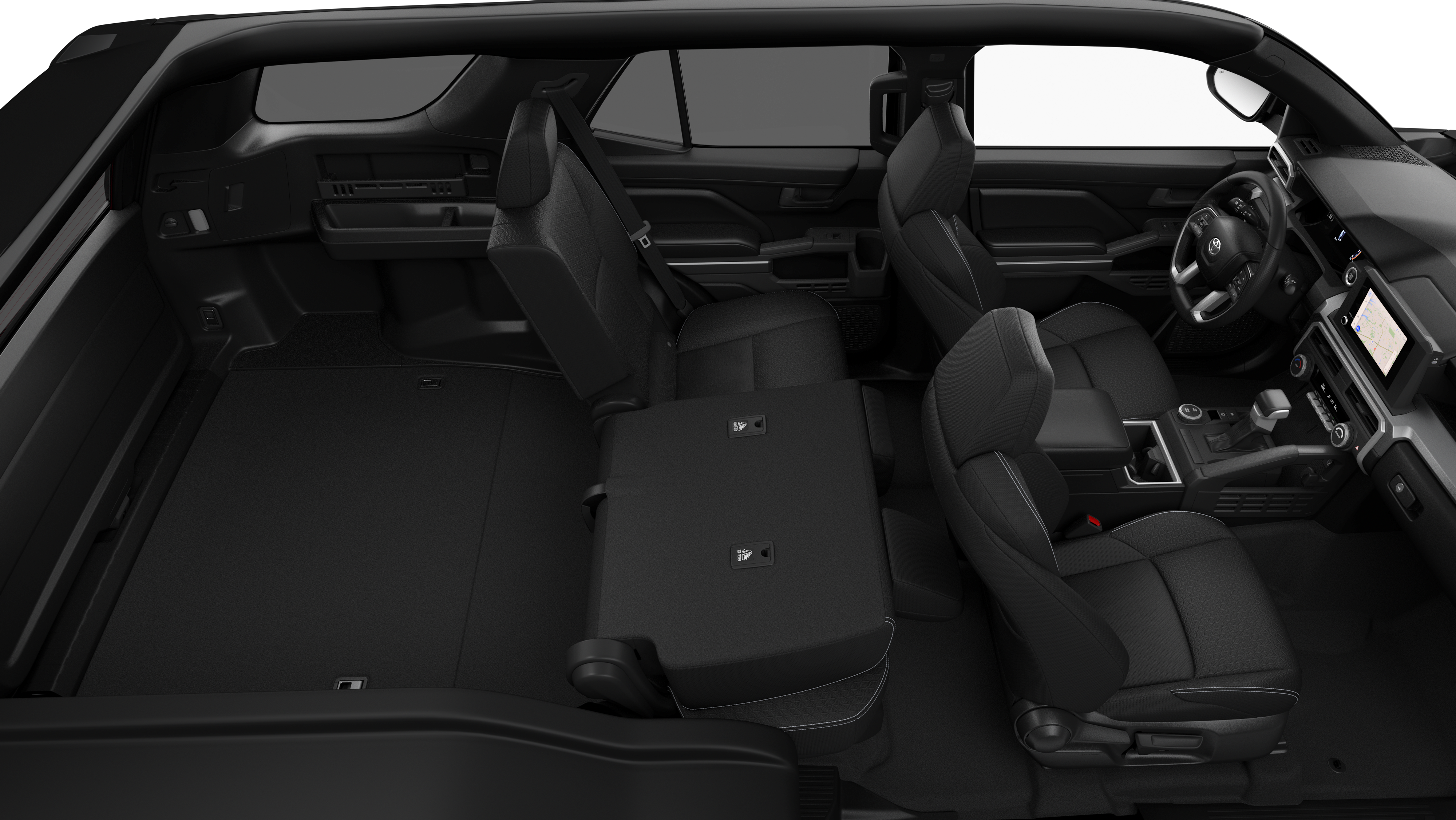 - 60/40 split, reclining and tumble-folding second-row seat with center armrest and cup holders
